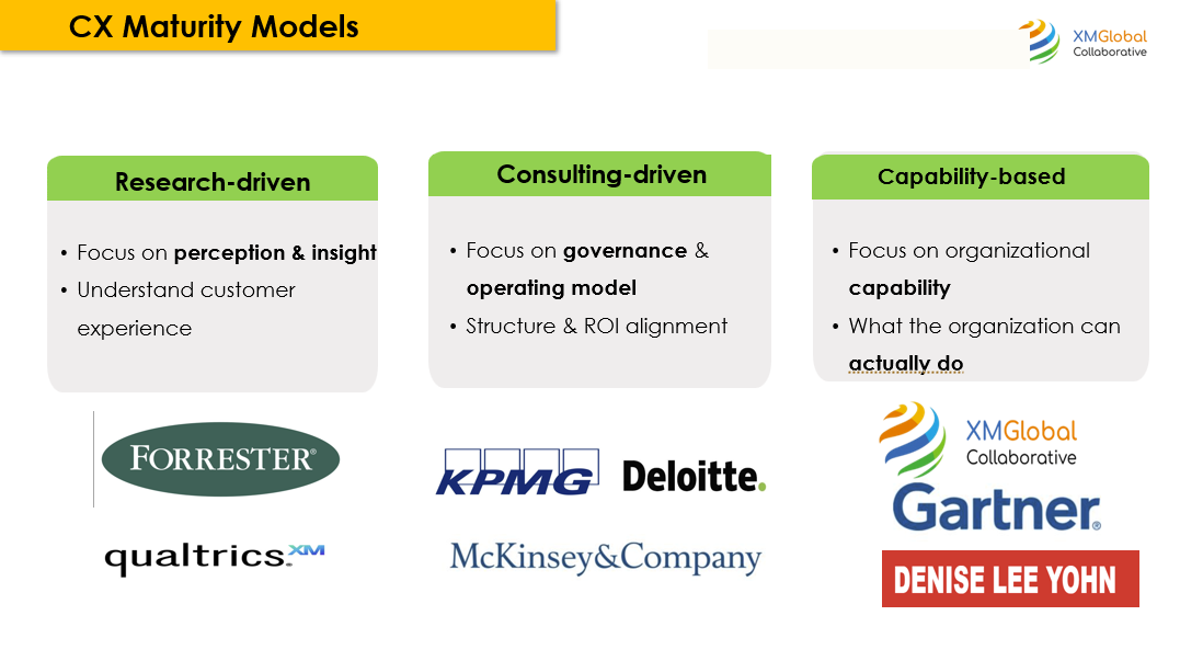 Về bản chất, các mô hình này đều đánh giá CX Maturity dựa trên hệ năng lực, với sự khác biệt nằm ở góc nhìn và cách tiếp cận.